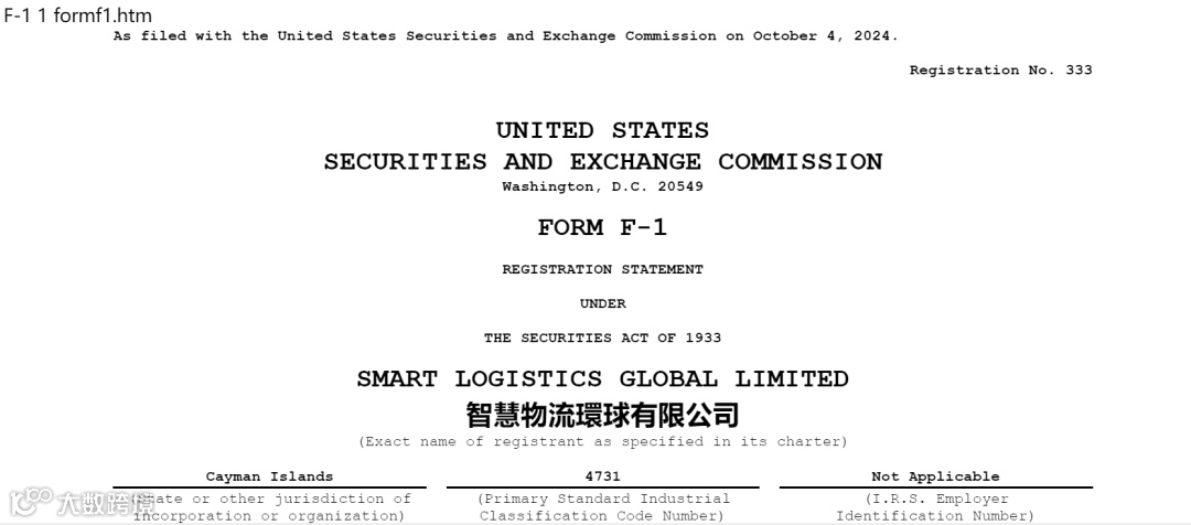 2024年10 月4日,来自江西的物流供应商Smart Logistics Global(以下简称“智慧物流环球公司”)向美国证券交易委员会(SEC)递交招股说明书,拟股票代码为“SLGB”申请在美国纳斯达克IPO上市。