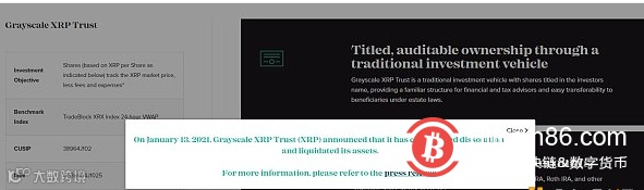 1月14日,灰度投资(Grayscale Investment)在官网发布公告称,根据美国证券交易委员会(SEC)关于XRP是证券的诉讼监,灰度投资决定开始清算并解散其XRP信托——Grayscale XRP Trust。