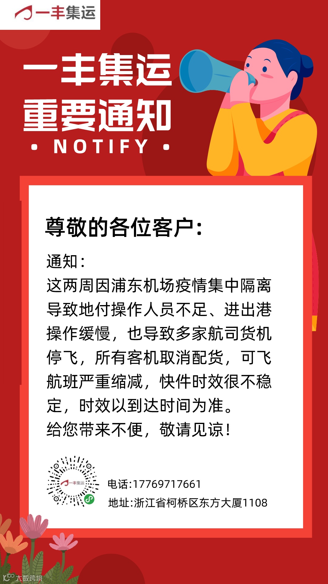 这两周因浦东机场疫情集中隔离导致地付操作人员不足、进出港操作缓慢,也导致多家航司货机停飞,所有客机取消配货,可飞航班严重缩减,快件时效很不稳定,时效以到达