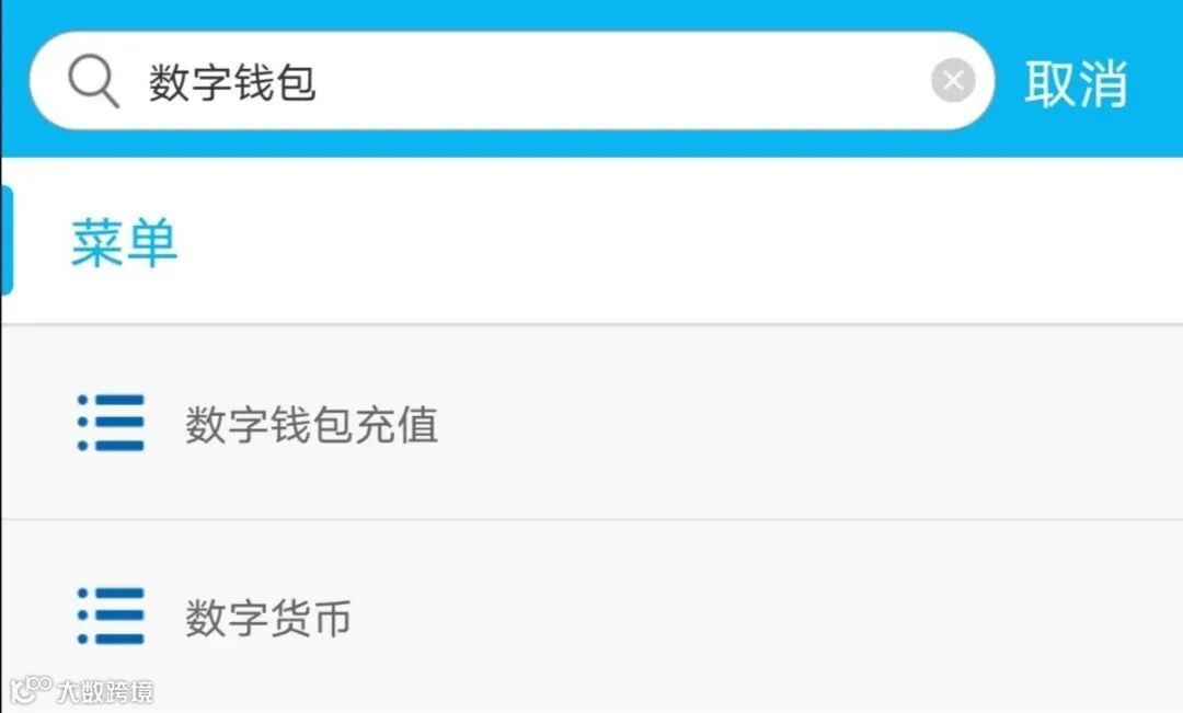 打开建行App,在最上方搜索栏输入“数字钱包”,显示“数字钱充值”和“数字货币”