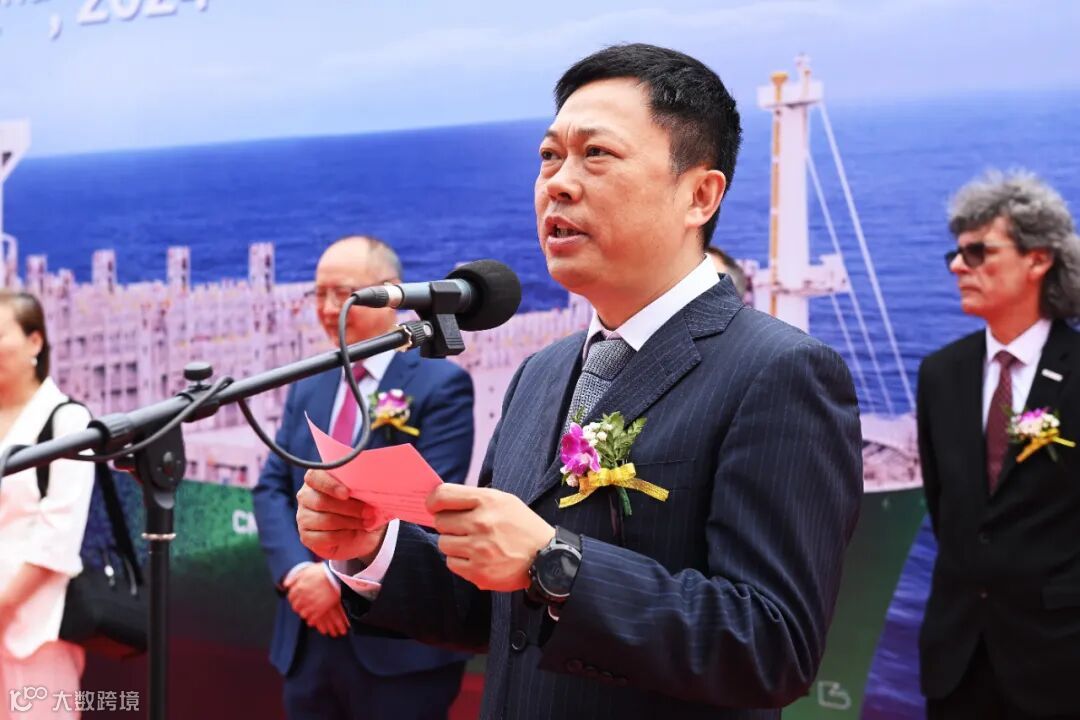 该船创造了同系列试航周期最短记录,过程中各方协同以高质量状态交船,这都离不开现场监造组、BV船级社和GTT的鼎力配合,也离不开各位一线员工的努力拼搏。我衷心祝愿这艘集装箱船在未来的航程中一帆风顺,也祝愿达飞海运集团在未来的发展中,持续引领航运业的潮流,创造更加辉煌的业绩。