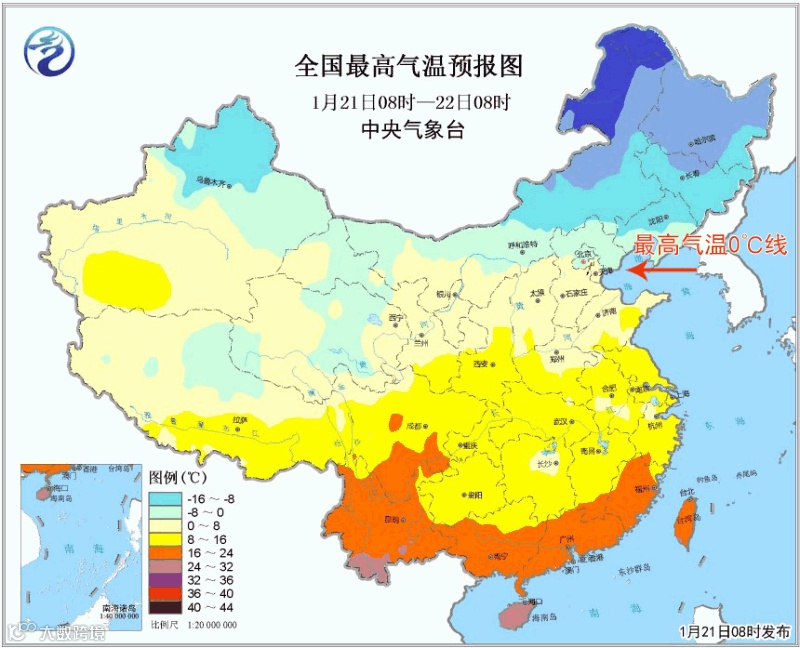 在黑龙江塔河,21日的最低气温也降到了零下41℃,根据气象标准,零下40℃以下即为“极寒”天气。