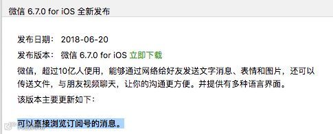 昨天,微信发布新版本:微信 6.7.0 for iOS(android 还得等等) 。据官方介绍,该版本主要更新为:可以直接浏览订阅号的消息。