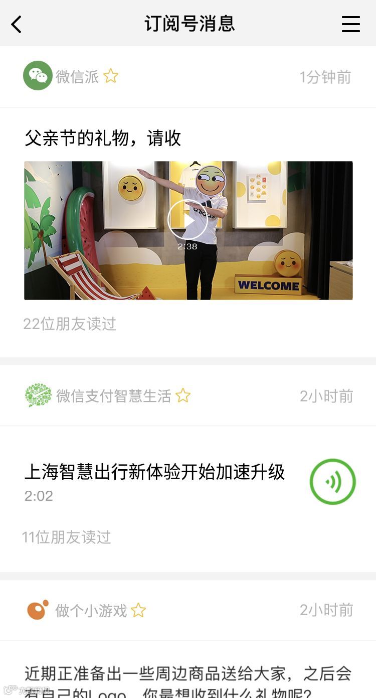 ⊙订阅号的群发消息以发布的时间顺序进行排列,朋友阅读数不会影响消息排序。