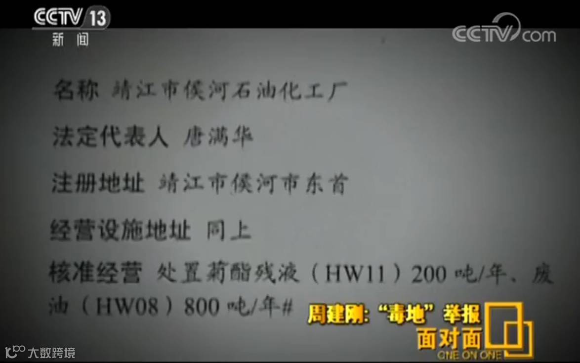 按照法律规定,企业只有取得环保部门批准的《危险废物经营许可证》才有资格从事危险废物的处置。许可证显示,侯河石油化工厂每年可以处理“菊酯残液”也就是农药企业产生的废液200吨。