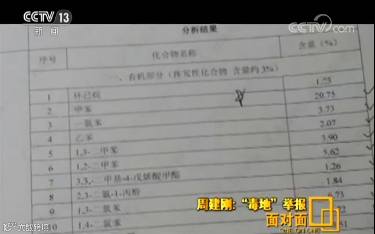 2015年3月,周建刚将取到的样品送到浙江中科院应用技术研究院分析测试中心进行检测。在等待检测结果的过程中,周建刚走访查询得知: