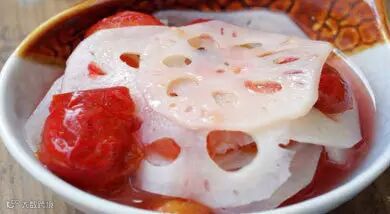 山楂维生素C含量高,营养非常丰富。莲藕味甘,具有清肺润燥、健脾开胃的功效。山楂藕片,既有山楂的风味,又不失新鲜莲藕的清脆。