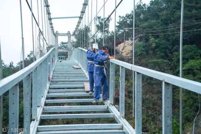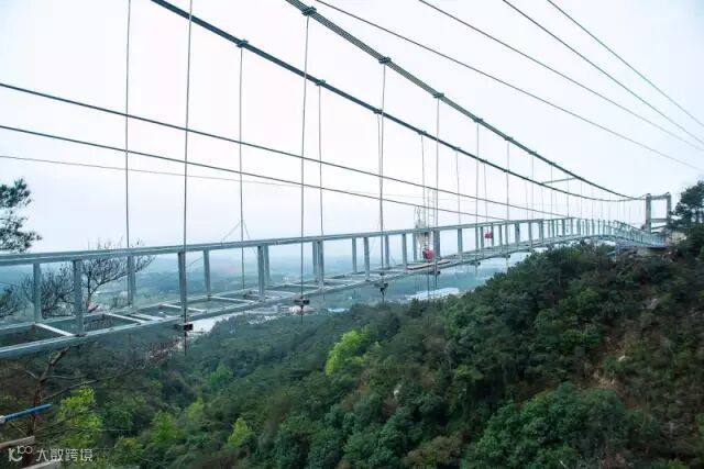 玻璃吊桥建于牛鱼嘴风景区的悬崖上,由铁索和多块巨大透明玻璃搭建而成 ,桥全长达250米!悬空的桥身200米!最高离地250米!