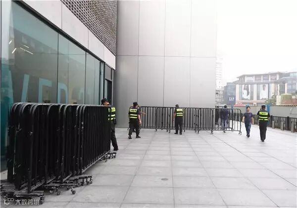 早上6点多来的三四十个保安,还有列了一整排、拐了好几个90度弯的黑色栅栏,此刻却备受冷清,毫无用武之地。