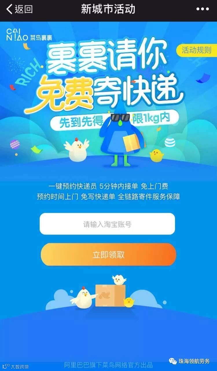 菜鸟裹裹上门寄件服务已接通天猫淘宝