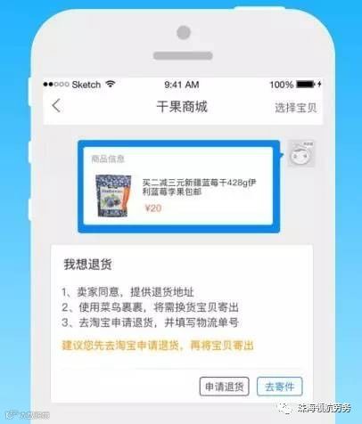 用户除可直接在天猫淘宝退货使用上门寄件服务外