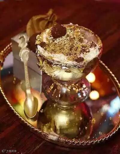 這份冰淇淋由25種可可制成,表面擺上絨毛狀凝乳和小塊巧克力,並將其裝在精制的金邊碗中,再配上鑲有鑽石的小匙。雖然昂貴,不過碗和匙是可以帶走的。天呐,隨便吃一口一萬元就沒了!