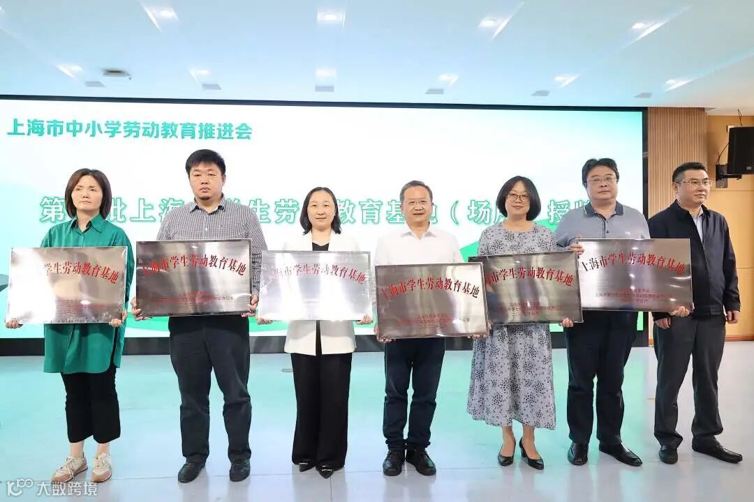 市教卫工作党委副书记、市教委副主任闵辉为上海中船文化传媒有限责任公司等6家单位作为第二批上海市学生劳动教育基地(场所)代表授牌