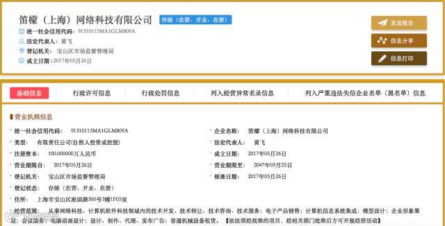 据每日经济新闻,通过这款共享遛娃小车APP查询到,这些共享遛娃小车的运营方是一家名为笛檬的上海公司。而且,这家公司在2017年5月26日才成立。