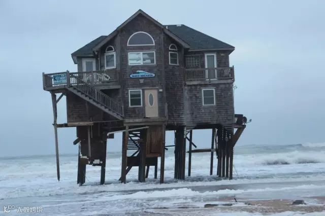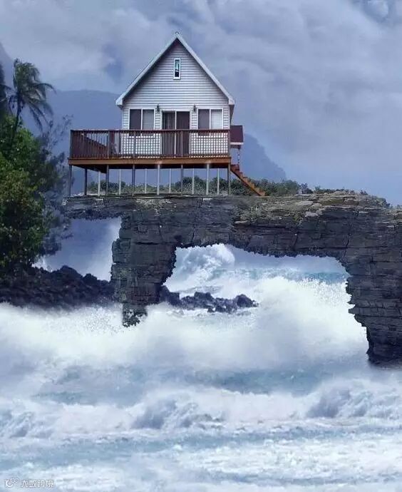 孤悬于小石座上,四周都是海水,每随着海浪拍打,房子就晃两晃,一不小心还会掉水里 ▼
