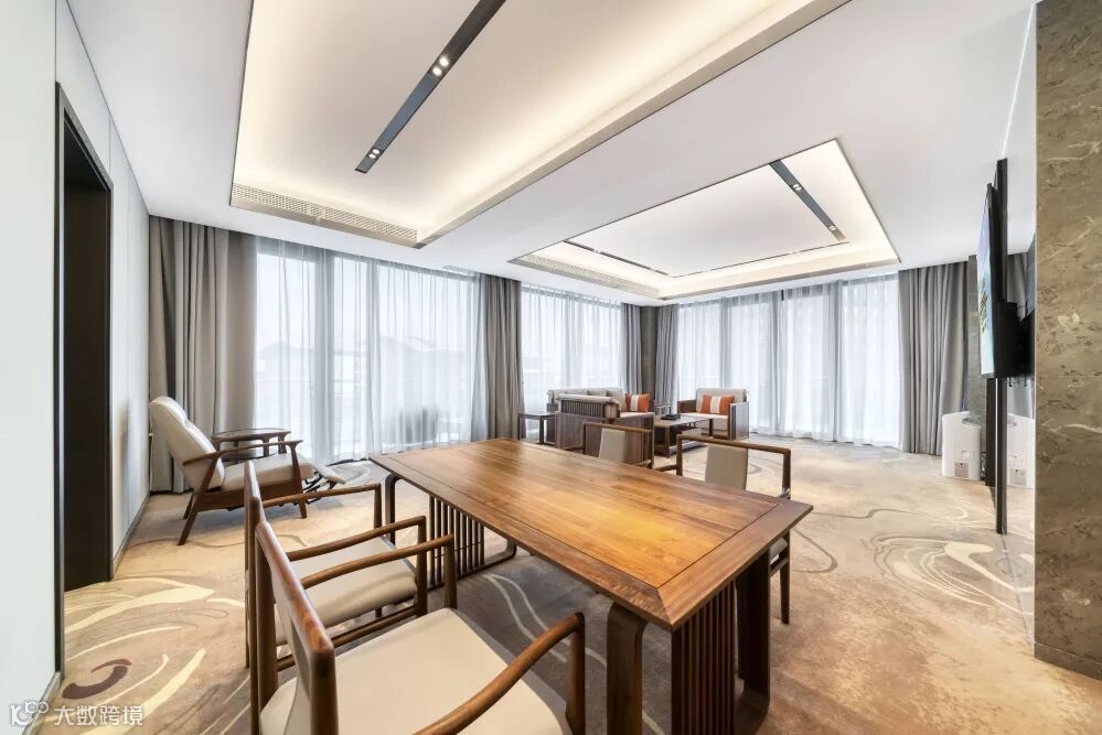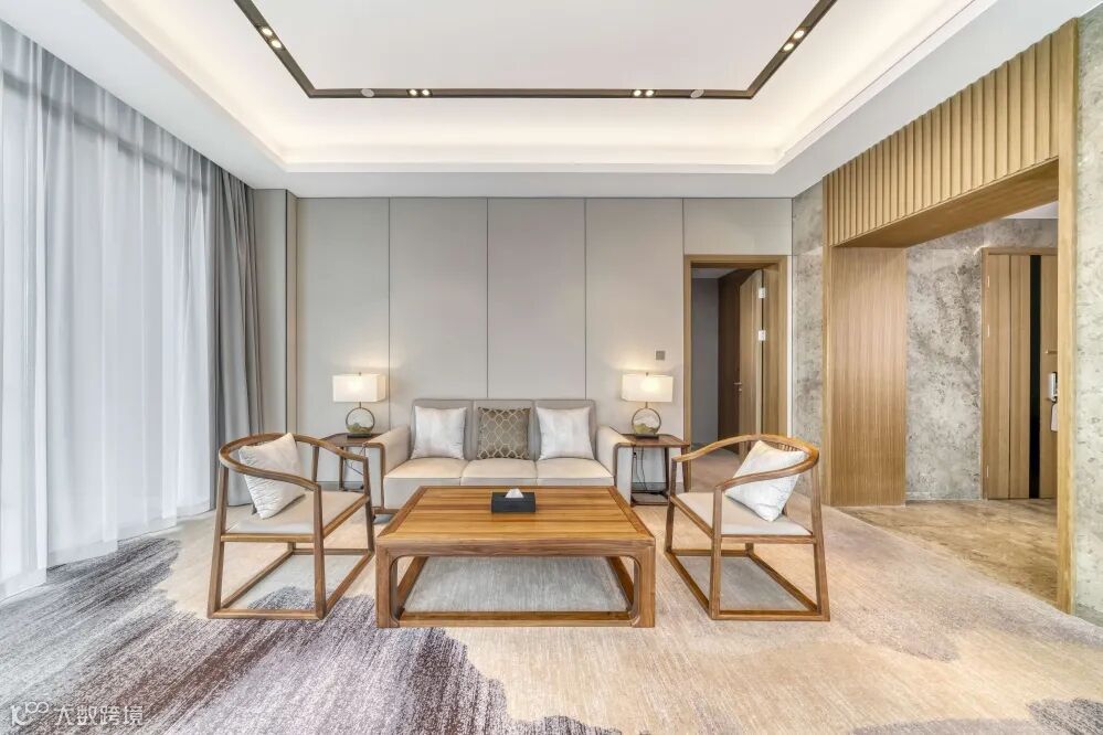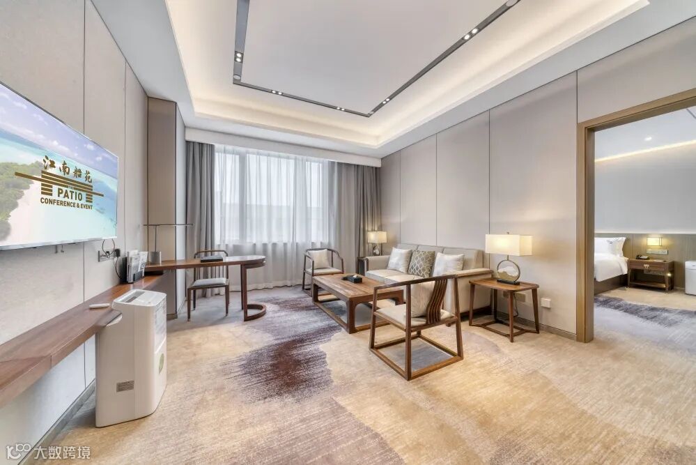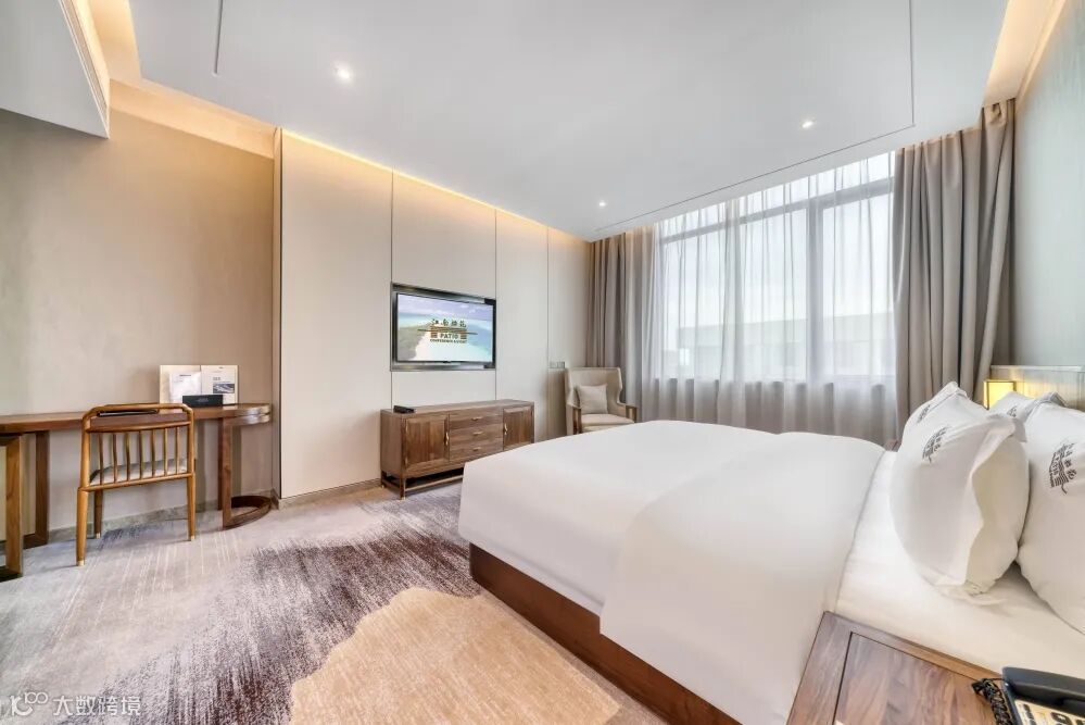 酒店套房宽敞舒适,装饰优雅,以古典新中式风格为基调,格调高雅,别具一格,是特为您量身定制舒适优雅的住宿环境!