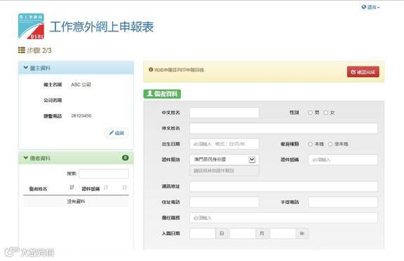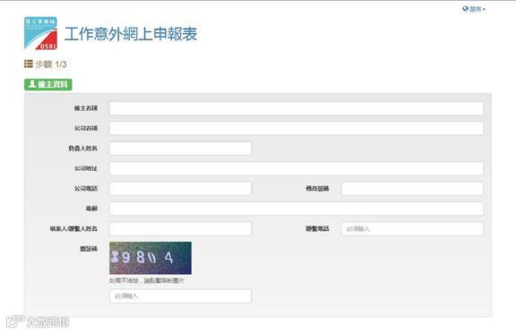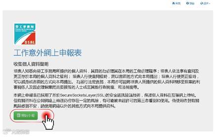 1. 點選「開始申報」進入工作意外網上申報表版面