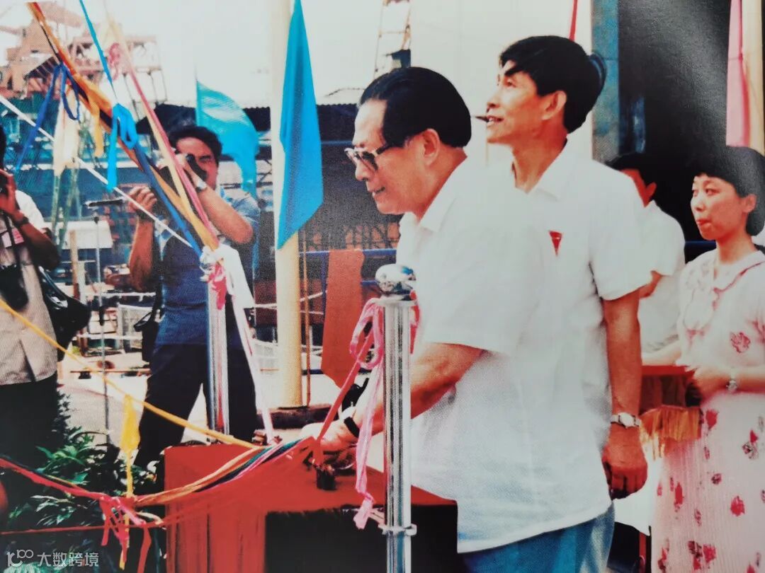 1986年7月28日,时任上海市市长江泽民为65000吨原油轮“柳河”号下水剪彩。
