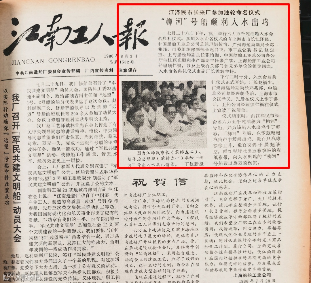 江泽民同志时任上海市市长曾到江南造船为下水的船舶命名,被1986年《江南工人报》记载。以下是详细内容: