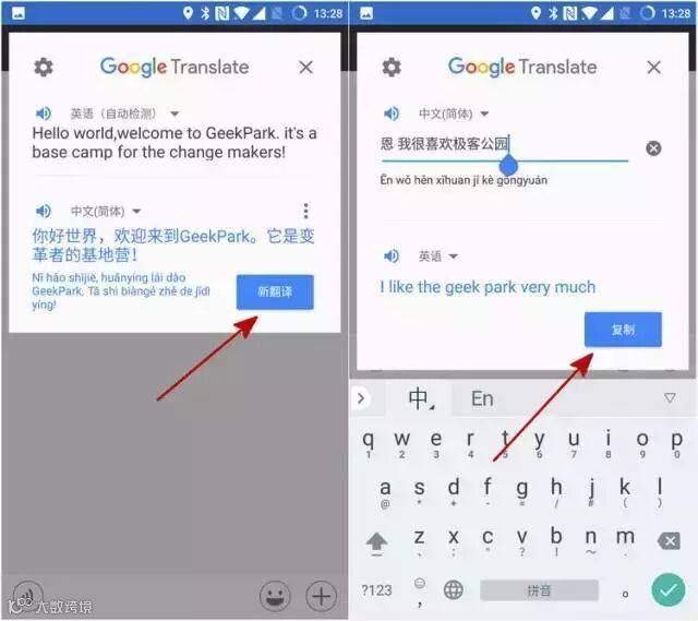 Google 翻译中的实时对话模式就可以帮助用户识别被使用的两种语言,然后迅速将对话翻译成另一种语言。整个过程用户都不需要点击手机切换语言类型,非常流畅。