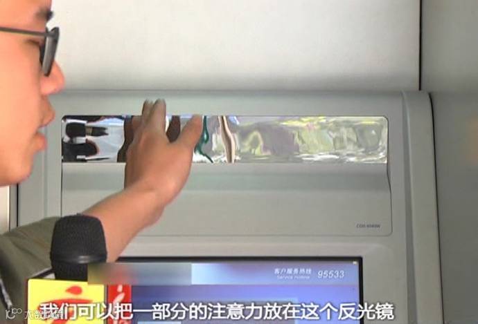 专家表示,在银行ATM取钱时,任何靠近的人都值得引起注意。随时关注ATM机上方的反光镜,警惕周围有没有神色可疑者!