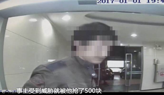 此时透过监控视频可以看到,该持刀男子戴着兜帽、口罩,整个过程都十分淡定。