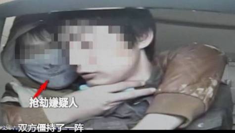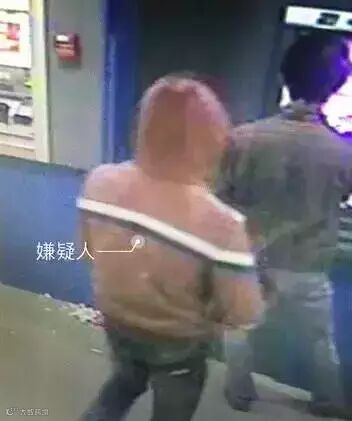 这时,蒙面男子突然左手一把箍住正在取钱的男事主脖子,右手手中拿着一把小刀。