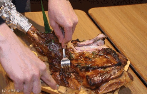 尤其是看着大厨一块一块把大块肉从羊腿上分离的时候,馋的都想直接抢过羊腿直接啃……看见没~连骨头都辣么大一条,拎起来都是个武器!