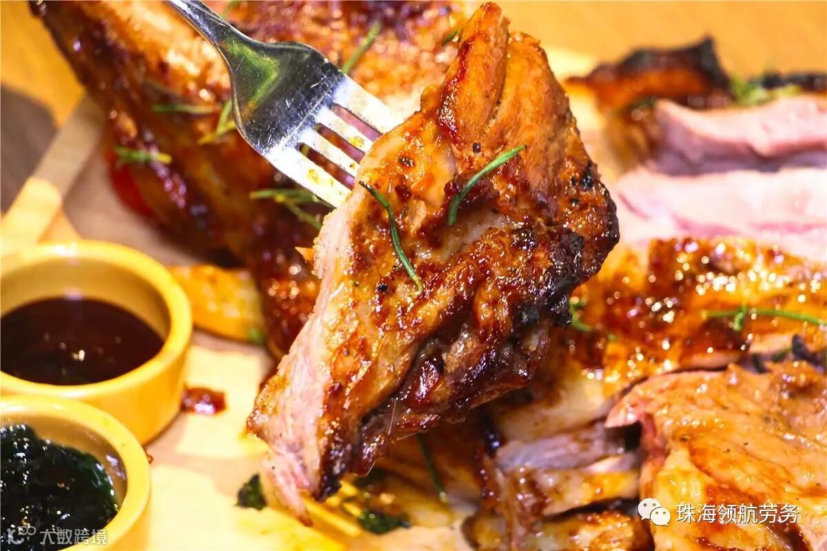 因为独特腌制加工,整条羊腿都吃不出什么羊膻味,如果有对味道特别敏感的可以配上薄荷啫喱吃~但是小河更喜欢烤肉酱,蘸着吃简直天生一对那样!