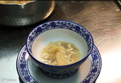 跟蟹皇石锅翅一样。石锅燕也是煮沸高汤上桌,自己放入被细化的燕窝。这样一碟燕窝都加进石锅里,想想吃完后养颜美容的魔力,就使劲大口大口吃吧!