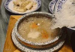 之所以说不用担心食材的真假性,是因为石锅翅里的鱼翅是自!己!倒!进去的!把一大块鱼翅放进沸腾的汤头里,眼看鱼翅与浓郁的汤缓缓融合,食欲无法控制,蹭蹭蹭上升。
