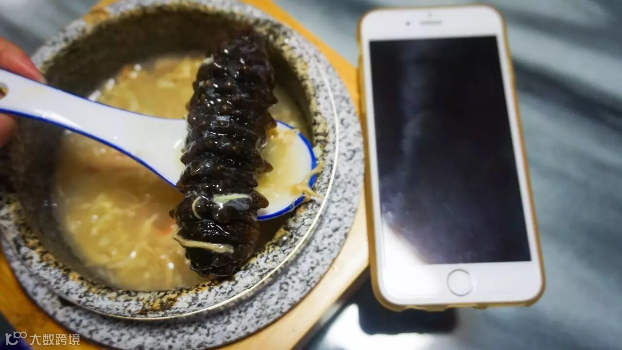 来看看,用矿泉水精心泡发六天以上的海参足足有iPhone6的长度!别看长这海参“其貌不扬”,它可是有多种养生功效呢。