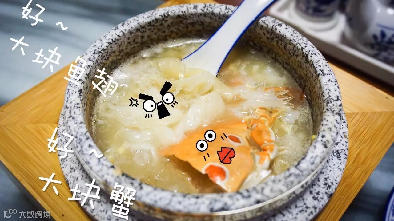 缓缓搅拌,鱼翅、螃蟹、花胶、鲍鱼螺,还有原本就材料十足的汤头,使得每捣一勺都是满满的食材,满满的“胶原蛋白”!!