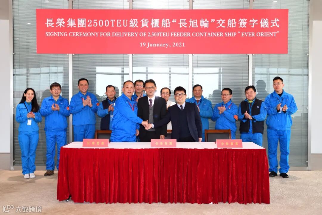 1月19日,由中国船舶集团旗下江南造船建造、上海船舶研究设计院设计的2500TEU集装箱系列首制船交付长荣集团,标志着公司2021年30余艘船舶交付拉开序幕。
