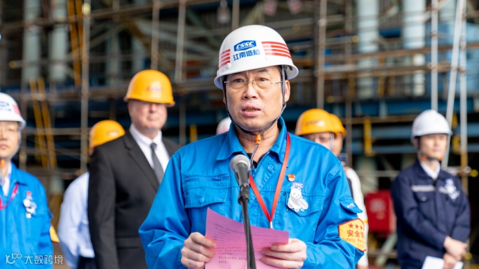 张俭对专程出席仪式的领导和来宾表示了欢迎和感谢。他强调,自2020年5月份首制液货舱开工以来,在船东鼎力支持和各参建方密切配合下,克服了新冠疫情等不利因素,先后突破了一系列核心关键技术,最终确保了按期优质完工。今天的完工仪式标志着基于“BrilliancE”技术的B型独立舱围护系统取得了实质性的工程化突破,B型舱的建造材料也形成了全部基于国内的完整产业链,实现了完全自主可控。他表示,江南造船将以今天的仪式为新起点,继续以“高质量保交船”为原则,确保世界首艘设有B型液货舱的超大型乙烷运输船按期优质交付。同时,积极推动与太平洋气体船(香港)的合作,积极响应国家“碳达峰、碳中和”承诺,共同为国际航运业“碳效率”做出积极贡献。