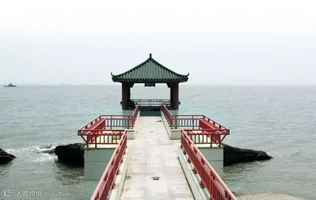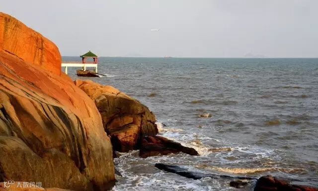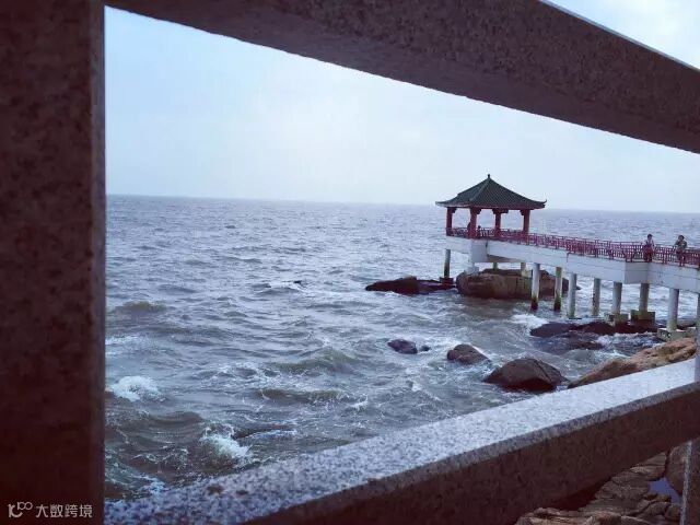 沿着石径一路往前,不远处有一个中式小亭子,名为“听海轩”。建于海面岩石之上的凉亭,由海岸径上向海面引一条走道所连接,造型规则,极具美感。绿色的亭顶和红色的柱子相映成趣,又在蓝色的天空大海中显得和谐,是适合拍照的好地方。
