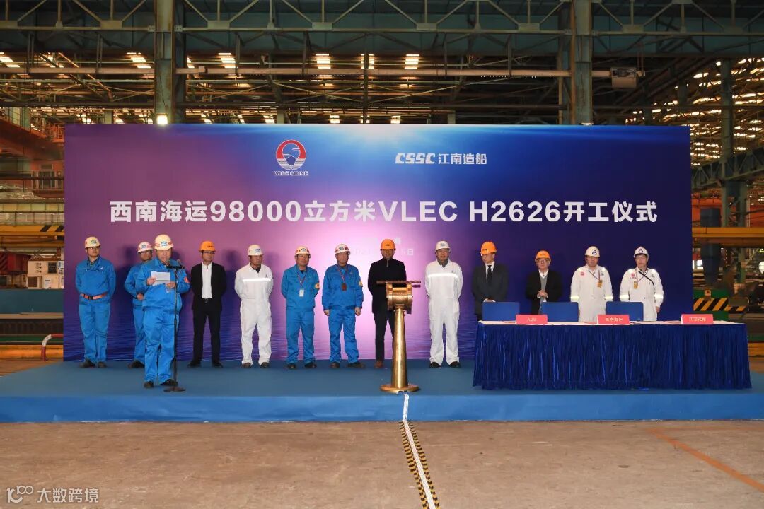 1月15日,一艘世界最大舱容99000立方米超大型乙烷运输船(VLEC)开工;1月14日,一艘15000TEU箱船和一艘86000立方米液化气船同日出坞。新年伊始,中国船舶集团旗下江南造船就迎来了生产开门红。