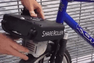 这可不是常规的电动自行车,而是普通自行车改装成的电动自行车。众筹网上有款名叫 Share Roller 的产品就是能让自行车变成电动的,把黑盒子架在前轮头顶,再把一根控制线搭在车把上,下方传动轮就会带着后轮滚动起来,不同的版本续航能力从 12 千米到 89 千米不等。