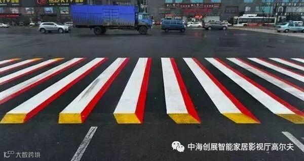 那就把斑马线化成 3 D 效果的,开着车突然看见这样的路口,你还敢不减速、不观察的横冲直撞吗?