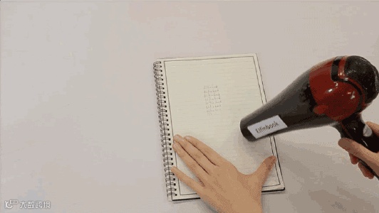 写完字的本子,只要用水一擦就能把字擦掉或者用吹风机吹掉,完全没有痕迹,一个本子可以用十次。而且 Elfin book 团队还专为笔记本设计了 APP ,你在擦掉之前可以拍照上传云备份。而且价钱是 89 元,普通人也可以接受毕竟买一个本子相当于买十个本子。
