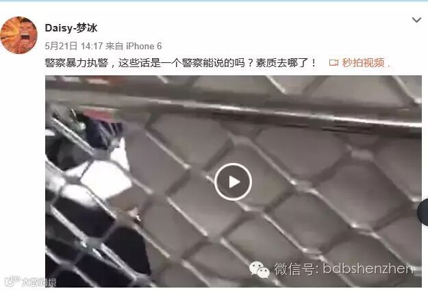小编在其中一名当事女孩@Daisy-梦冰 的微博上看到了其发布的“深圳流塘派出所警察言语暴力执法视频完整经过”,了解到该事件并非发生在端午节假期期间,而是发生在5月21日,视频也是其当天上传至网络的。