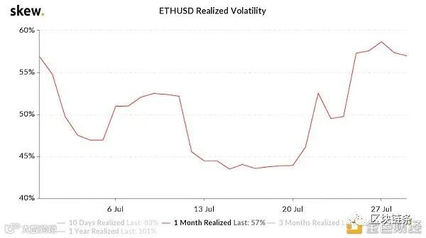 随着ETH的价格在在过去的一个月的表现抢眼,其价格波动性也在稳步上升。根据来自Skew的数据,ETH的价格波动性在过去几天里一路攀升至57%。然而,staking的引入对ETH的价格和货币政策有什么影响,可能只有在以太坊2.0推出后才能得到回答。但是他接着说:
