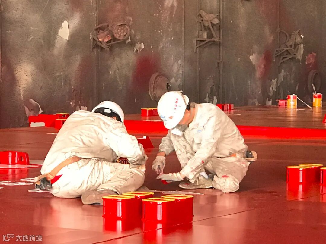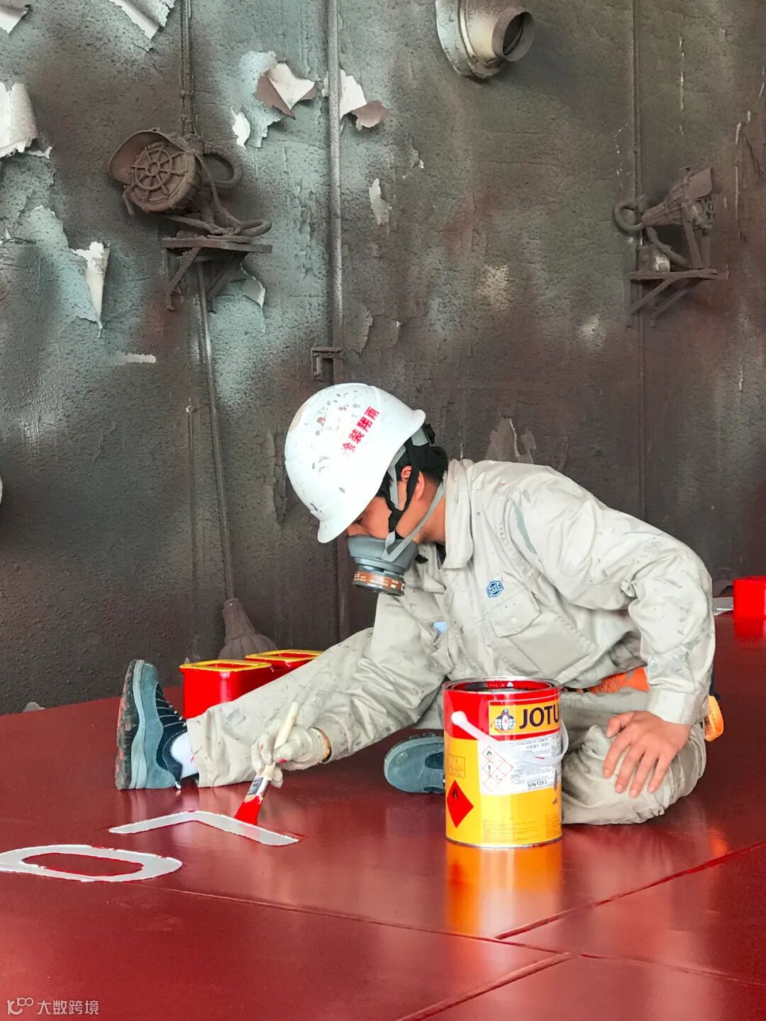 “两周时间做得好一点的话,大概能做64块,92 块,这将近150%的生产负荷一开始想都不敢想。”单单是一块舱口盖,就需要经过预涂、喷涂、淋水、清洁、试验检验、雾喷等统共10道工序。