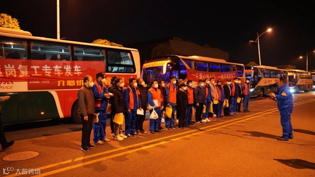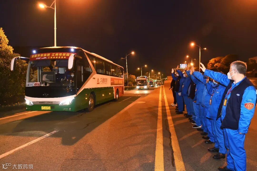 13点,车辆启程返沪,历经7个多小时,首批“爱心复工专车”安全抵沪。江南造船总经理、党委副书记黄文飞,党委副书记、工会主席朱煜,副总经理陈卫平以及各部门党政负责人在公司停车场列队欢迎“爱心复工专车”返厂,见到这些回归的江南员工,黄文飞激动地表示:“你们辛苦了!祖国等你造舰,江南接你回家!冬去春会来,2020年让我们共同努力!加油!”“加油!”在场人员齐声喊道。随后,返厂员工由工作人员指引前往各观察点。