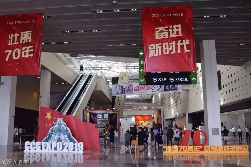 “建国70周年动漫游戏主题展区”入口醒目位置
