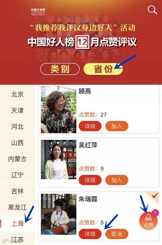 点赞规则:每位网友对每个候选对象当月只能点赞一次。