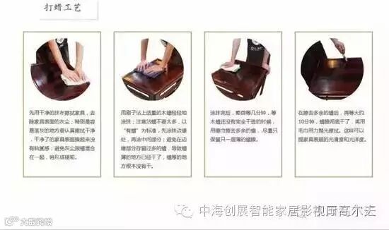 4、时常给家具上蜡,因为给家具打蜡,不仅可以起到保护家具的作用,保持家具水分的平衡,还可以保持红木家具本身的颜色,再者又没有封闭家具的棕眼毛孔。打蜡的红木家具,在使用的过程中,经过一段时间,还可以形成包浆。这包浆,光滑,是家具价值的一个重要体现。