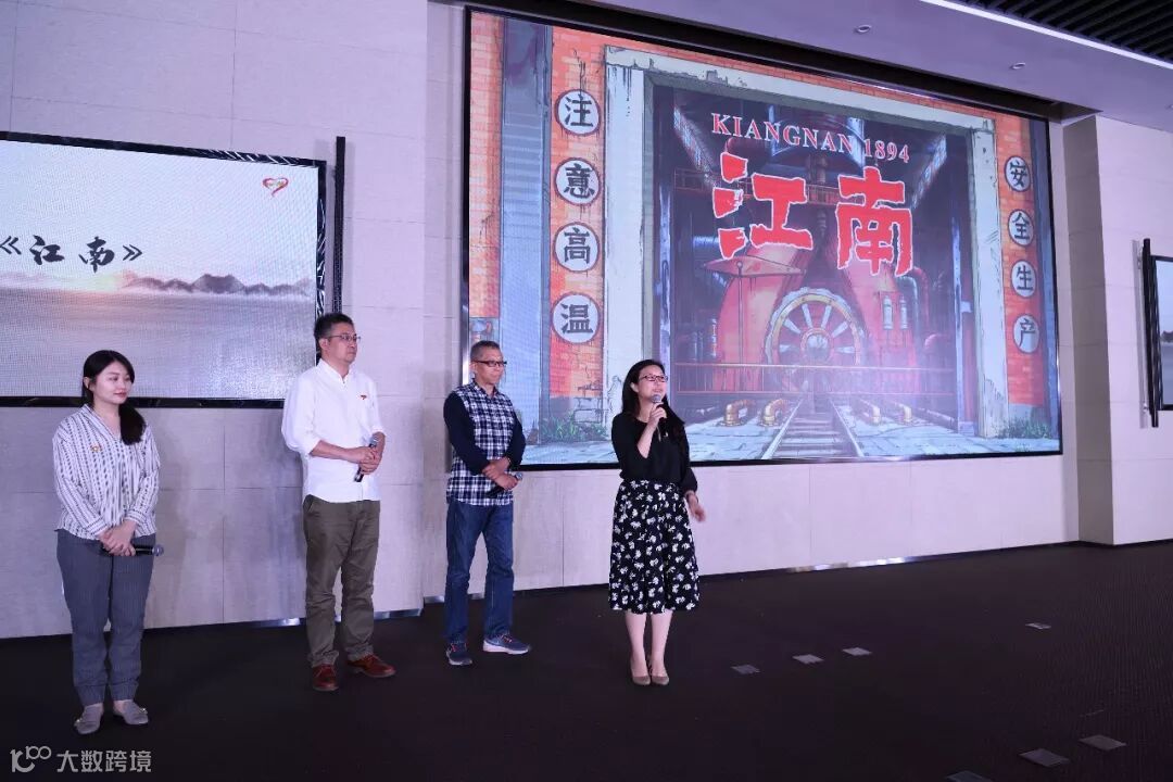 在典礼开始之前,“感动江南”徽标启用仪式于当日下午在江南研究院一楼大厅举行,江南造船党委副书记朱煜与设计者韩婷共同点亮徽标。“感动江南”logo用红色线条汇聚在一起形成“心”的形状,“心”中托起极具立体感的金属色“JN”图标,寓意着来自五湖四海的江南人,凝心聚力成一条心,共同擦亮公司的“金字招牌”。