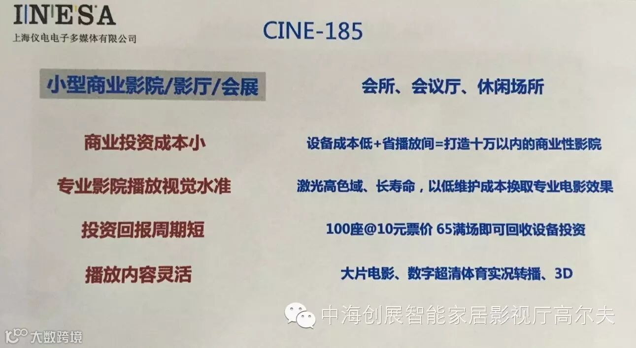 虽然激光电视已不再是INESA的专属产品,虽然其他品牌的激光电视也有其独具的购买亮点,但INESA并没有放弃这激光电视这口蛋糕,而且深入研究,在原有100寸激光电视的基础上,2016年推出了全新100寸、120寸、185寸的反射式超短焦激光影视机!相比同尺寸其他品牌的激光电视价格更低、性价比更高!