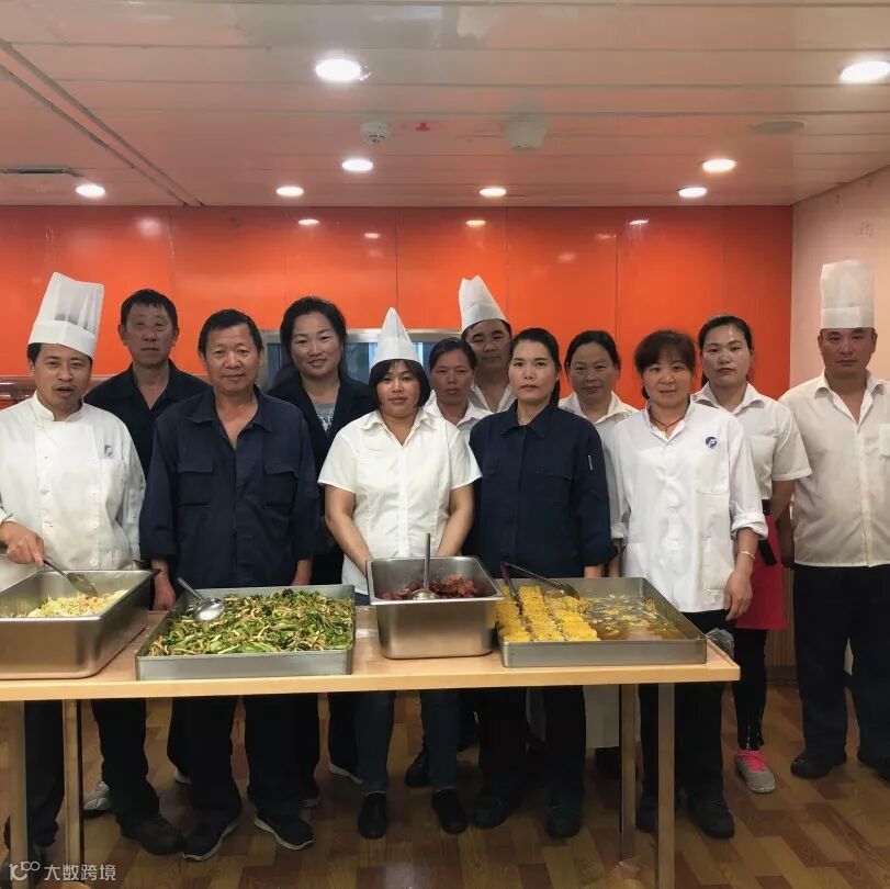 洗菜、切墩、烧饭、洗碗、打扫……他们同其他试航人员一样起早贪黑,他们是负责船上229人饮食的12人。